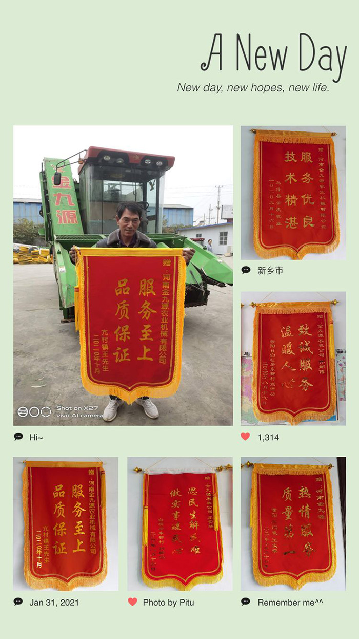 ? ? 2021牛年的腳步越來越近,河南金九源公司不負眾望,凝心聚力,傾情打造2021款穗莖兼收機!伴隨著公司成長的腳步,我們承載著太多的期待。心存感激,永續(xù)前行,我們會不斷創(chuàng)新、提升自我、打造精品、塑造品牌,一路與您同發(fā)展,共進步,服務無止境,真情到永遠!